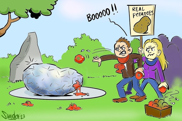 De gemeenteraad van Wales zit in de puree. Ze gaven bijna 7000 euro uit aan een kunstwerk om het begin van de Wales Coastal Path-wandeling te markeren. Het standbeeld verbeeldt een kenmerkende zwerfsteen uit de omgeving, maar de plaatselijke bevolking vindt het grote geldverspilling en zijn boos. Ze doopten het standbeeld om tot 'gepofte aardappel'.