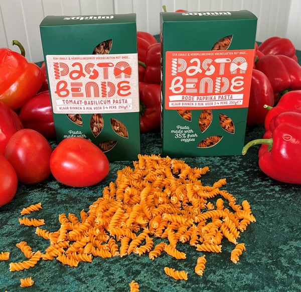 Het assortiment van Sophyn bestaat op dit moment uit wortel-, spinazie-, rode bieten- en pastinaakpasta. "Daarnaast hebben we recent een tomaat-basilicum variant uitgeleverd. De rode bieten en pastinaak zijn inmiddels toch wel zo'n 95 procent van reststromen, wat al zeer mooi is. Dit is alleen als ze in het seizoen zijn uiteraard, want zodra ze niet in Nederland verkrijgbaar zijn is er ook geen sprake van reststromen. Voor de spinaziepasta gebruiken we vriesvers en wortelen is nog enigszins sporadisch uit reststromen. Dat willen we steeds meer gaan uitbouwen, maar je bent ook afhankelijk van constante aanvoer voor productie."