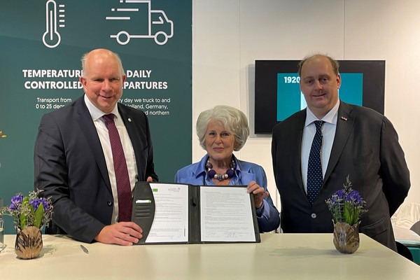 Pieter Varekamp (wethouder gemeente Westland) en Karla Peijs (voorzitter stichting AGL Westland) plaatsten aan het eind van de ochtend, in aanwezigheid van Frederik Zevenbergen (gedeputeerde provincie Zuid-Holland) zichtbaar verheugd hun handtekening onder het document met als titel “Het Agrologistieke Cluster Westland: nummer 1 van Europa”.