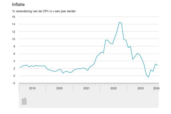 Bij de snelle raming was de inflatie in februari 2,8 procent, meldt het CBS. Deze raming is berekend op basis van nog onvolledige brongegevens. In januari was de inflatie 3,2 procent. De inflatie wordt elke maand gemeten als de ontwikkeling van de consumentenprijsindex (CPI) ten opzichte van dezelfde maand in het voorgaande jaar. De reguliere cijfers van de CPI van februari worden op 12 maart gepubliceerd.