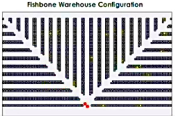 Hoe kun je de logistieke reistijd in een magazijn verminderen? Dit idee met een visgraadmagazijn geeft een interessant inkijkje. Worden in het conventionele magazijn 20 posities in 48,5 seconden afgelegd. Met dit visgraadmagazijn duurt het slechts 20 seconden. Een kwestie van omdenken dus.
