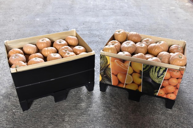 "Het doel is om de boxen in Duitsland sterker in te zetten en de toepassingsgebieden uit te breiden naar lokale producten. We hebben dit deels al succesvol geïmplementeerd door de oplossing nu ook toe te passen op kool, tomaten, uien en appelen. Ook voor eetbare pompoenen was er vorig jaar een toename in de vraag. Het is uiteindelijk ook een blikvanger: de kartons kunnen individueel worden vormgegeven. Bij pompoenen is er bijvoorbeeld een speciale Halloween-opdruk." Verder wijst Seegers op de efficiëntie van het proces: "De boxen zijn stapelbaar, vormvast en hebben een lichte houtstructuur. Dat is vooral tijdens het transport erg belangrijk. Een Düsseldorfse pallet is bijvoorbeeld veel instabieler. In dat opzicht hebben we dus een duidelijk concurrentievoordeel."