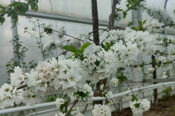 Naast de aspergeteelt heeft het bedrijf ook kersen staan, die eveneens op een vroege pluk afstevenen. Hierbij teelt het bedrijf acht verschillende rassen: Nimba, Samba bestuiver, Kordia, Merchant Noire, Areko, Carmen, Starblush 'Wittebuik' en Papillon 'Wittebuik'. "De eerste bomen staan inmiddels al in bloei. Daarin lopen we nu zo'n 14 dagen voor op vorig jaar. Het is eigenlijk best vreemd, omdat we een hele donkere en natte winter hebben gehad, maar toch zijn ze sneller dan bij een droge winter. Ik kan het niet verklaren. Wellicht heeft het te maken met het feit dat er weinig extreem koude dagen zijn geweest, maar enkel lichte vorst. Het blijft overigens nog even afwachten of het niet gaat vriezen. Van de week was het hier bijvoorbeeld rond de 0 graden en waren de ruiten van de wagens bevroren. Dat kan nog wel voor de nodige hinder zorgen, maar zodra de vruchtzetting is gebeurd, is de aanwezigheid van vorst niet meer zo'n probleem."