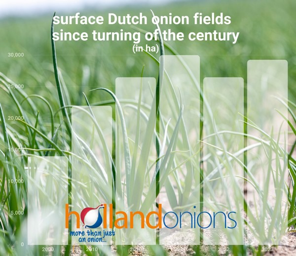 Voor het tweede exportjaar op rij blijft het totale Nederlandse exportvolume echter achter op het voorgaande exportseizoen. Maar met een stabiel marktaandeel van 20% op de uienexportmarkt ligt Nederland nog ferm aan kop. Door een sterk aanhoudende wereldwijde vraag naar de Nederlandse ui groeide in 2023 bovendien de waarde van de Nederlandse uienexport met maar liefst 49 procent als gevolg van de hogere uienprijzen. (bron: GroentenFruithuis). De exportwaarde van verse Hollandse uien passeerde daarmee de epische grens van 1 miljard euro. Nederland verwerft hierdoor een nog wat groter marktaandeel dan in 2022 (21,5%) op deze ranglijst.