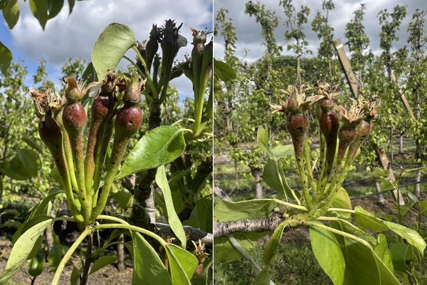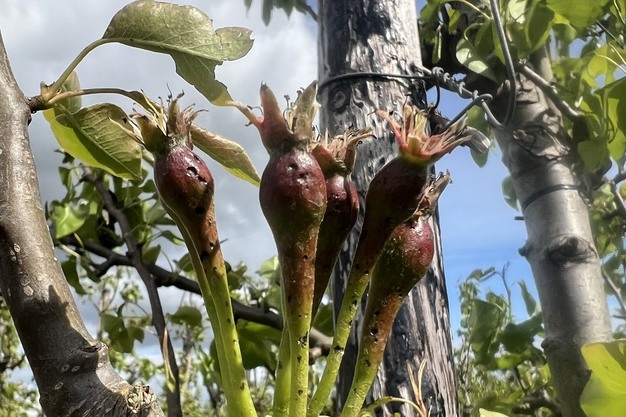 "De hele week kwamen er e-mails en telefoontjes binnen. De schademeldingen komen vanuit heel Nederland en uit België en hebben vooral betrekking op percelen met peren, die zich op dit moment in een cruciale fase van de vruchtzetting bevinden. Bij appel is nog niet of nauwelijks sprake van zichtbare schade, alhoewel dat misschien nog kan veranderen. Verdere ontvingen we enkele meldingen uit het kleinfruit, met name blauwe bes", zegt Pietjan Visser van OFH.