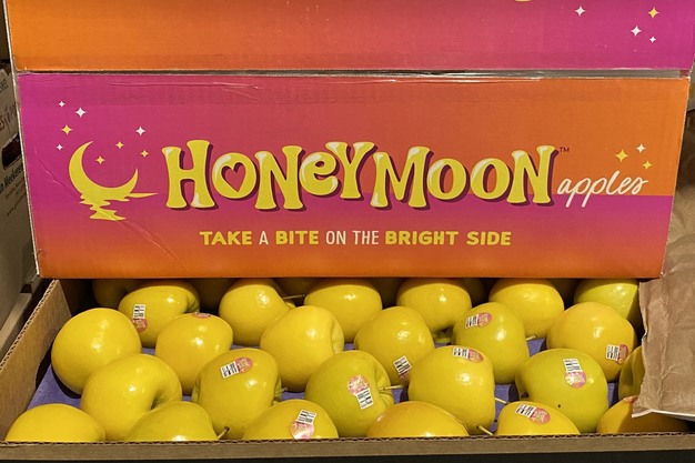 Honeymoon is een stevige, glanzende, botergele appel. "We wilden geen andere rode appel meenemen. Honeymoon biedt een andere kleur en heeft ook unieke eetkwaliteiten", zegt Van Meekeren.