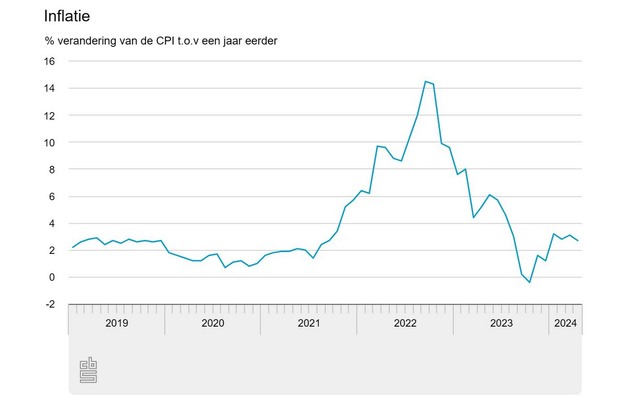 Bij de snelle raming was de inflatie in april 2,7 procent, meldt het CBS. Deze raming is berekend op basis van nog onvolledige brongegevens. In maart was de inflatie 3,1 procent. De inflatie wordt elke maand gemeten als de ontwikkeling van de consumentenprijsindex (CPI) ten opzichte van dezelfde maand in het voorgaande jaar. De reguliere cijfers van de CPI van april worden op 7 mei gepubliceerd.