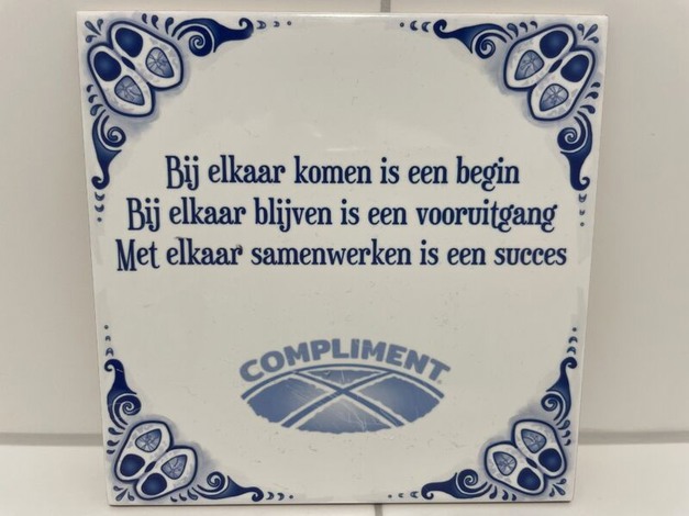 Op de wc van één van onze bedrijven kwam ik het onderstaande tegeltje tegen. Inderdaad een tegeltjeswijsheid, maar wel één die klopt. Ook een proces wat herhaald moet worden en waar we met elkaar aan moeten blijven werken. Regelmatig bij elkaar komen vergroot het succes van met elkaar samenwerken. Mooi dat commercie gaat vragen om deze bijeenkomsten en helemaal top om te zien dat we groeien als groenten & fruit familie en steeds beter de aansluiting met elkaar vinden. Ben ik trots op. Bedankt collega's voor de positieve inbreng en op naar een top seizoen!