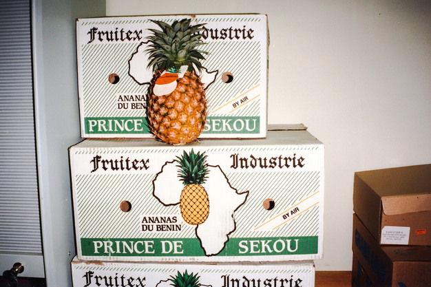 De tweede factor die verantwoordelijk is voor de toename van de 'vliegananas' is het goedkoper worden van de chartervluchten, met name vanuit Ghana. Ghana is de hoofdleverancier van RCM. De twee Ghanese merken die gevoerd worden, zijn Ghana Gold en Mashaco. "Wij hebben al lang een uitstekende handelsrelatie met Combined Farmers, de producent van de Thana Gold ananas. We hebben hiervan de alleenverkoop voor Noord-Europa. Om een eenheid in verpakkingen te verkrijgen, hebben wij hier dozen laten ontwerpen, waarin de ananassen per zes stuks rechtop worden vervoerd. Deze dozen worden plano per schip naar Ghana vervoerd. De dozen die in Afrika zelf worden gemaakt, zijn van een slechte kwaliteit. De lijm is op maismeelbasis en ze vallen hier nogal eens uit elkaar. De aangevoerde ananas varieert in grootte van 800 gram tot 2,8 kilo. De grotere maten gaan veelal naar Duitsland."