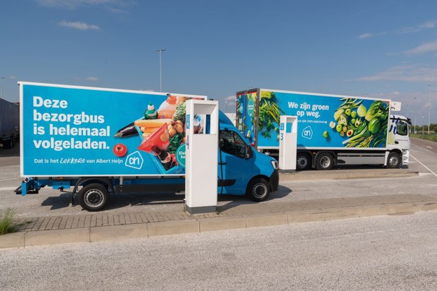 Albert Heijn opende 27 mei het nieuwe laadplein bij het distributiecentrum in Pijnacker. De supermarkt heeft in Nederland in totaal 270 laadpalen voor 74 vrachtwagens én 250 bezorgbussen. Albert Heijn reed vorig jaar al 2,5 miljoen kilometer elektrisch en gaat dit aantal in 2024 verdubbelen. Hiermee is de supermarkt hard op weg om alle klanten en winkels in Nederland en België in 2030 emissievrij te beleveren. "Bovendien stelt de supermarkt als eerste Europese retailer duurzaam opgewekte energie beschikbaar voor strategische partners. Een belangrijke stap om de doelstelling van 45% CO2e-reductie in scope 3 emissies te realiseren", zo melden ze.