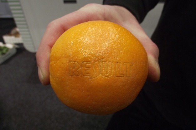 In plaats van de producten te bedrukken met inkt of additieven wordt de buitenste schil van het fruit met een laser gemarkeerd. Er is slechts een beetje warmte nodig dat het pigment in de buitenste laag verandert. Daardoor wordt de kwaliteit van het fruit niet beïnvloed en kan het gewoon gegeten worden.