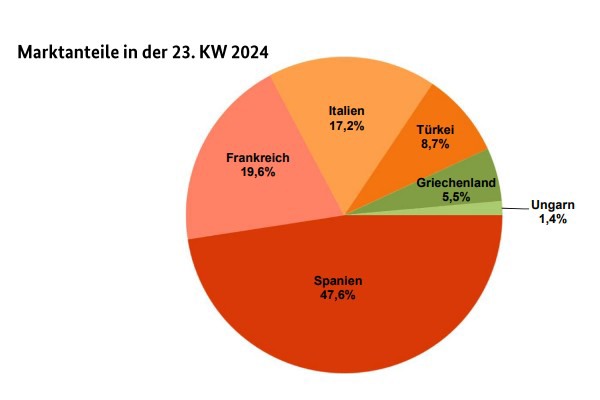 Spaanse abrikozen domineerden met afstand de Duitse markt. Franse en Italiaanse partijen volgden op grote afstand. Matador-abrikozen uit Turkije waren op veel, maar niet alle markten verkrijgbaar. Turkse suikerabrikozen, Sekerpare, zijn tot nu toe alleen in München aangekomen. Griekse producten maakten het plaatje compleet in Frankfurt. De Hongaarse importproducten, gesorteerd en verpakt in Oostenrijk, waren overtuigend qua smaak in München. Volgens de BLE lieten de dominante Spaanse producten echter soms te wensen over wat betreft hun smaakeigenschappen. De Franse producten hadden ook af en toe te weinig smaak. Over het algemeen is de beschikbaarheid aanzienlijk toegenomen. De vraag kon hier niet altijd gelijke tred mee houden, hoewel deze geenszins onvriendelijk was. Er werden vaak kortingen genoteerd en vooral bij de kleinere maten konden kortingen niet altijd worden vermeden.