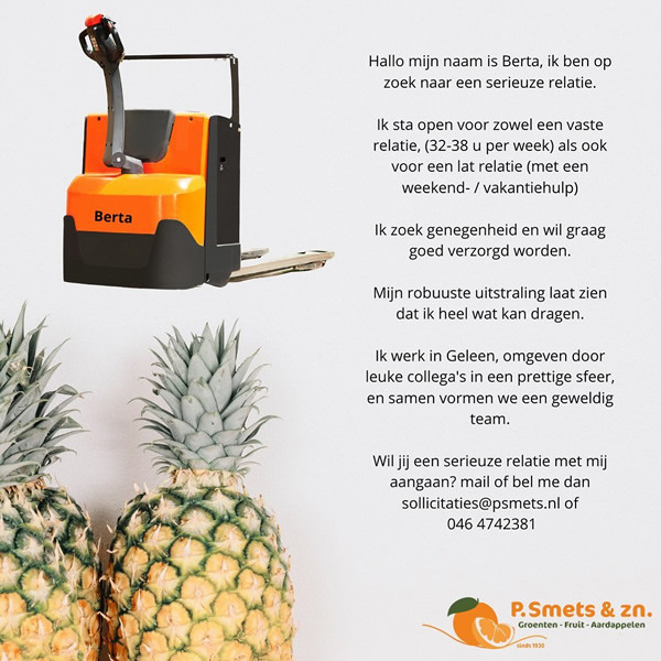 Abonneren Ik ben al ingeschrevenOnze Berta is erg verdrietig, ze heeft de ware nog steeds niet gevonden! Ben jij misschien diegene die Berta weer gelukkig gaat maken? Reageer dan snel met een CV en begeleidende brief via [email protected]
