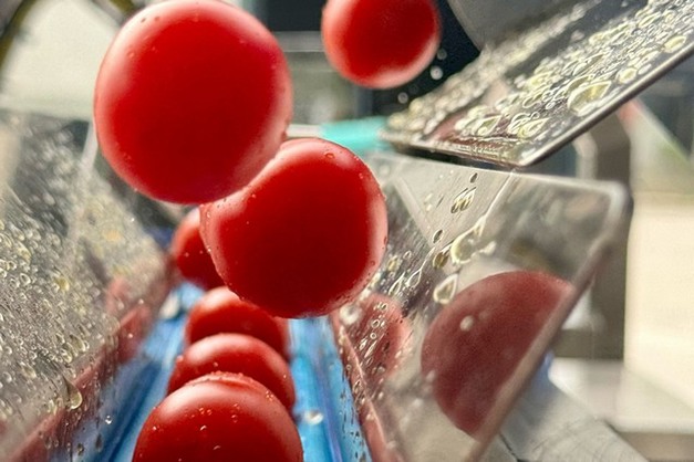 Maar wat is het voordeel van een PND-machine? "Het is een snelle machine met een productiecapaciteit van ongeveer 200 kilo cherrytomaten per uur", antwoordt de expert. "Maar de machine is ook heel veilig, omdat ze voldoet aan alle veiligheidsnormen binnen de huidige regelgeving. Natuurlijk is ze ook innovatief, want ze voorziet in automatisch laden, wat nog niet eerder op de markt aanwezig was in deze toepassing. De tomaten worden in een wastank gebracht en vervolgens door middel van een lift naar de laadband getransporteerd die ze uitlijnt en naar het snijstation brengt."