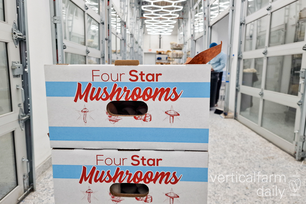 Joe's liefde voor zijn stad wordt weerspiegeld in de naam van het bedrijf, die verwijst naar de vier rode sterren tussen de twee lichtblauwe banden van de vlag van Chicago. Maar de sterren verwijzen ook naar de kernwaarden van het bedrijf: kwaliteit, vertrouwen, innovatie en duurzaamheid. Het bedrijf teelt zeven soorten paddenstoelen, waaronder pruikzwammen, kastanjechampignons, blauwe oesterzwammen, zwarte oesterzwammen, maitake, gouden fluweelpootje (Golden Enoki) en koningsoesterzwammen. Four Star Mushrooms is van plan om de wekelijkse opbrengst in de zeventien kweekkamers te verhogen van 2.000 pond (ca. 907 kg) naar 8.000-10.000 pond (ca. 4,5 ton).