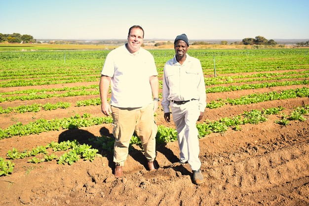 Links Roedolf van der Merwe, eigenaar van Eat Your Greens, met Khoza Mokhako, senior manager.
