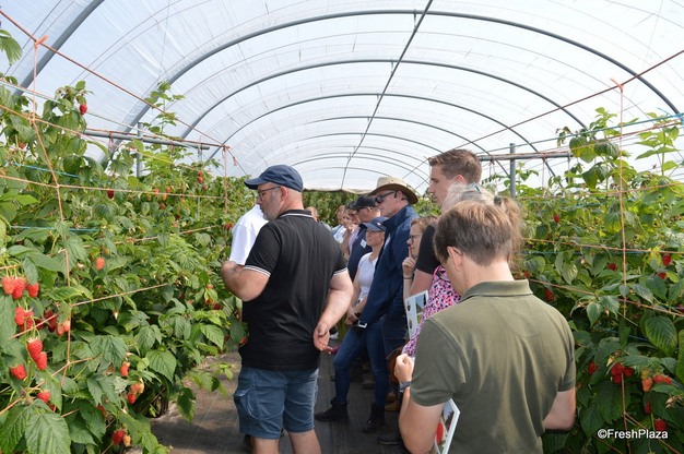 Gasten krijgen de kans om de frambozen in de tunnels te bekijken en vragen te stellen