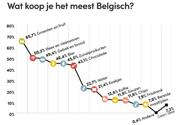 De Belgische consument wil zijn steentje bijdragen aan de lokale economie door Belgische voedingsproducten in haar winkelmandje te leggen. De klassieke paradepaardjes vinden we hier uiteraard terug: bier en chocolade scoren hoog. Maar de echte medailles gaan naar de Belgische groenten & fruit, vlees(waren) en brood & gebak. De consument beschouwt deze als 'lokaal geteelde of geproduceerde' producten. Ook onze bieren en zuivel vervoegen het rijtje, gevolgd door een resem andere producten uit ons rijkelijk gevulde gamma.