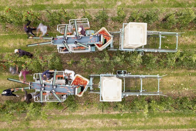 De appelvolumes zien er over het algemeen goed uit. Hoewel er van boomgaard tot boomgaard verschillen zijn, ziet de totale appeloogst er redelijk uit. Naar verwachting zal de oogst iets groter zijn dan in 2023, maar niet zo groot als in 2022.