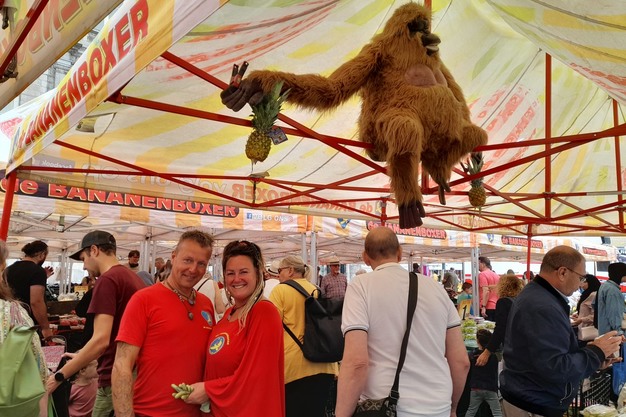 Tholen – Het swingt op de markt in Maastricht in de gigantische zelfbedieningskraam van Bananenboxer. Gangmakers zijn de familie Vroegop, die al sinds 1942 op de markt in Maastricht aan het 'boxen' zijn met AGF. "Iedereen op weg met een glimlach, dat is het doel," zegt Hennie Vroegop, derde generatie. Dat doen ze met een mix van scherpe aanbiedingen en, heel belangrijk, humor. "Het gaat om het totaalplaatje, we prikkelen alle zintuigen."