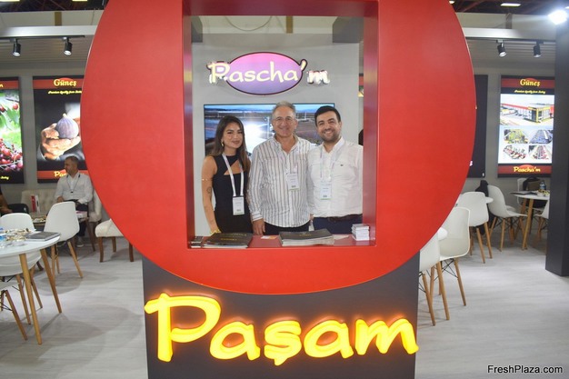 Melisa en Tufan Ünal en Furkan Mavi van samenwerkingspartner Pasam op Interfresh Eurasia 2023.