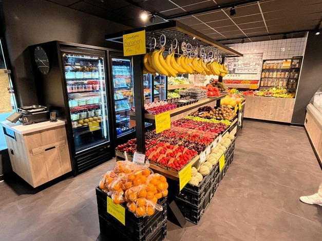 De modernisering van de winkel werd gerealiseerd door Toonen Winkelinterieurs. Zij maakten vooraf een 3D-ontwerp waarin de wensen van de ondernemers nauwkeurig werden verwerkt. De bedieningstoonbank is vervangen door een multifunctioneel wandkoelmeubel, waarin een breed assortiment aan kant-en-klare maaltijden, desserts, vruchtensappen en zuivelproducten wordt gepresenteerd. Voor de onbewerkte groenten en fruit is gekozen voor een tweelaags AGF-stelling, type Waterval, met ruimte voor voorverpakte aardappelen. LED-verlichtingsarmaturen op spanningrails zorgen voor een sfeervolle uitlichting van het geheel.