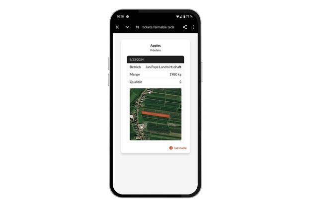Het geeft meer details over de oogstpartij, inclusief een visueel overzicht van de veldlocatie en een mooi overzicht van volume, kwaliteit en batchnummer.