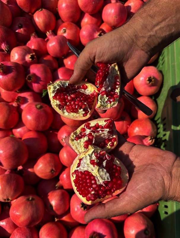 "Het wordt een uitzonderlijk jaar, met meer dan 5.000 ton granaatappelen. Dat is 40% meer dan de 3.500 ton van vorig jaar. Maar vooral de kwaliteit is uitstekend, onder meer dankzij een modern irrigatiesysteem dat ons behoedt van droogtegerelateerde problemen", vervolgt Dario De Lisi.