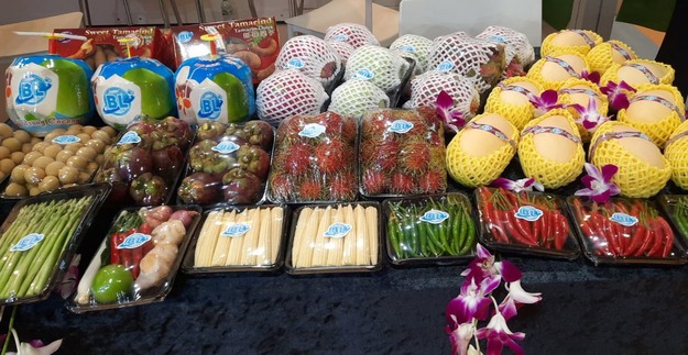 Op de beurs waren veel exotische groenten en fruit te zien. Voor de Aziatische markt is het erg belangrijk dat potentiële kopers de verschillende producten kunnen proeven. Daarom brachten de meeste bedrijven monsters mee en waren exposanten druk bezig om de displays in hun stands klaar te maken en ervoor te zorgen dat hun producten het publiek zouden aanspreken.