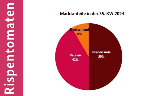 Belgisch en Nederlands aanbod domineerde duidelijk het toneel. Italiaanse en Spaanse cherrytomaten waren ook beschikbaar. Bij de ronde tomaten was in München en Berlijn Pools aanbod beschikbaar. Duitse producten waren beschikbaar in de segmenten cherrytomaten, trostomaten en ronde tomaten. Over het geheel genomen steeg de aanvoer aanzienlijk, vooral uit Nederland. Volgens de BLE kon de vraag dit niet altijd bijbenen, waardoor retailers soms gedwongen waren om kortingen aan te bieden als ze grote overschotten wilden voorkomen. Inkoopgerelateerde prijsstijgingen werden echter ook vaak waargenomen. De prijzen stegen ook als gevolg van verbeterde opslagmogelijkheden. In Berlijn verloren Duitse producten aan belang.