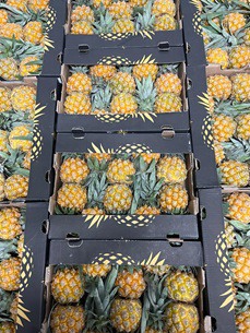 Rechts: Imifino is jaarrond leverancier van luchtvracht Queen Victoria baby ananassen.