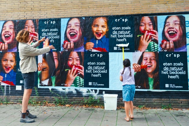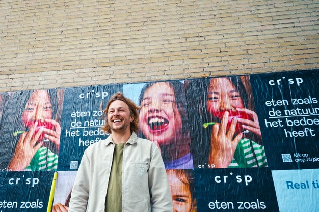 Het is misschien een wat ongewoon gezicht: een boer die midden in de stad reclameposters staat te plakken. Vandaag lanceert B Corp supermarkt Crisp een campagne die een podium geeft aan pioniers die het anders doen. Met als missie om het voedselsysteem te veranderen, is de campagne erop gericht om het kleinschalige groot te maken, en de beoogde overgang naar meer natuurinclusief boeren in Nederland te stimuleren. Dat zijn boeren die met de natuur meewerken om de biodiversiteit te vergroten, de bodem te herstellen en stikstof terug te dringen. "We brengen eten zoals de natuur het bedoeld heeft letterlijk terug in het straatbeeld. En verkopen dus niet alleen de producten, maar ook de filosofie erachter", vertelt Rózsa Groothoff, creative director bij Crisp.