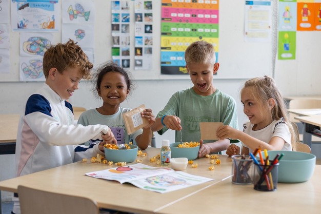 Dit schooljaar doen zo'n 10.000 basisschoolleerlingen op 85 scholen in de regio Noordoost-Brabant mee met een vernieuwend voedseleducatieprogramma: Smikkelen van eetbaar groen. In dit vrolijke, praktijkgerichte groenteprogramma werken scholen samen met 45 lokale ondernemers - van boeren, supermarkten en groentetoko's tot restaurants en zorginstellingen - en met moestuincoaches om leerlingen spelenderwijs voedselvaardigheden en kennis over gezonde en duurzame voeding bij te brengen. De samenwerking op deze schaal is uniek in Nederland, zo geeft Spoony aan.