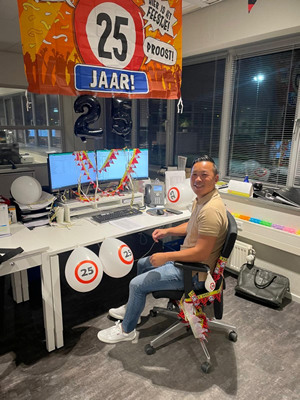 "Afgelopen vrijdag 13 september was onze collega Kees Yeung al weer 25 jaar in dienst bij Hanos. Kees is begonnen als stagiair en inmiddels al jaren inkoper van aardappelen, groenten en fruit. Vandaag gaan we Kees in het zonnetje zetten", vertellen zijn inkoopcollega's.