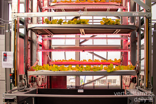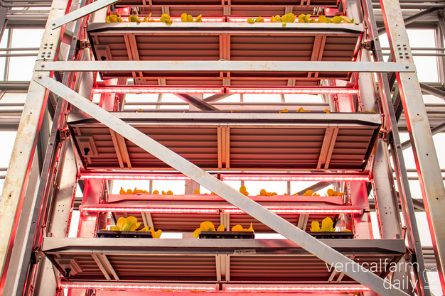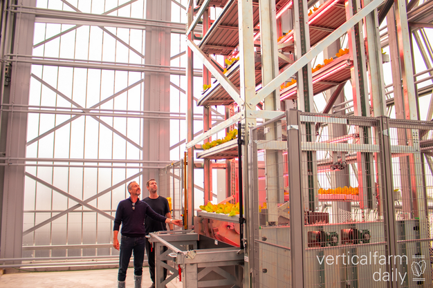 De vertical teelttoren van 12 meter hoog staat in Agrotopia, de dakkas in Roeselare. De meerlagenteelt combineert dynamische belichting en natuurlijk zonlicht. Door op verschillende lagen te telen, wordt de beschikbare ruimte optimaal benut. Dat biedt nieuwe kansen voor stedelijke voedselproductie en vormt een inspiratiebron voor bestaande serres, aldus de initiatiefnemers.