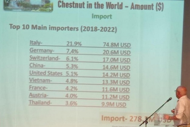 Daarom stijgt de import van wilde en tamme kastanjes uit landen buiten de EU, met name Turkije, Albanië, Chili en, zij het in kleinere hoeveelheden, China (Castanea mollissima). Het is duidelijk dat als de oogst stabiliseert of zelfs licht daalt, er meer ruimte zal ontstaan voor andere teeltlanden zoals China, 's werelds grootste producent met ongeveer een aandeel van 80%.
