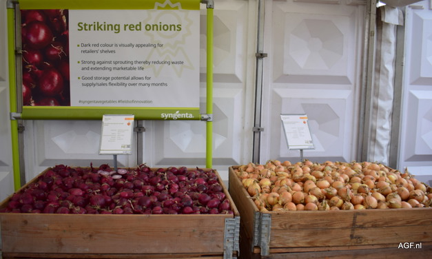 In uien heeft Syngenta een breed assortiment dat geschikt is voor alle klimaatomstandigheden, echter één uiensoort ontbrak daar nog. Brigitte vertelde dat het gelukt is om ook deze commercieel in de markt te zetten: de rode uien voor teelt in Noordwest-Europa: Allurion. "Onze eerste Rijnsburger rode ui. Met een diepe donkerrode kleur, sterk wortelgestel en middellange bewaarcapaciteit, is dit ras zeer flexibel inzetbaar."