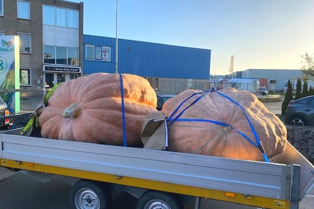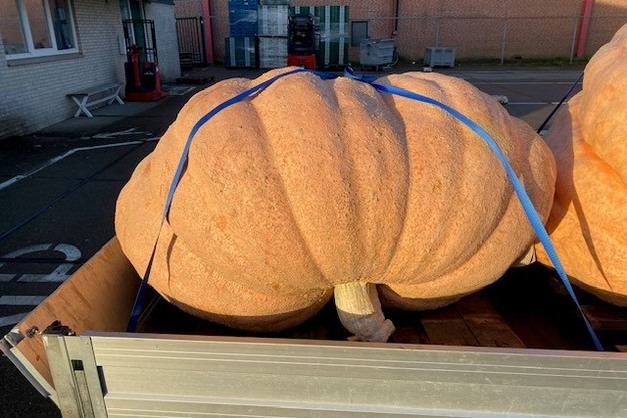 Pompoenen zijn er in alle kleuren, vormen en natuurlijk maten. Kwekers proberen elk jaar nieuwe records te breken en dat zorgt ook voor leuke extra handel. "Deze twee megapompoenen zijn nu weg. Onze inkoper is op zoektocht in Frankrijk, morgen zijn die weer binnen", besluit Kees.