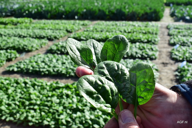 Maar voor succesvol spinazie telen is meer nodig dan een geschikt ras. "Ons succes komt vooral ook door eerlijk en open contact met onze klanten en teeltbegeleiding. We kennen hun situatie, hun wensen en helpen hen om de geschikte rassen uit te kiezen. Samen maken we op maat gemaakte teeltplannen die het hele seizoen dichten."Glad blad (achter) en savooi blad (voor)