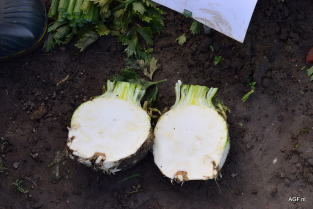 Op het demoveld was duidelijk te zien dat Tarvos hier beter tegen bestand is dan andere rassen. Het loof is minder sterk aangetast door de bladvlekkenziekte en dat leverde, ondanks de uitdagende omstandigheden, een mooie knolselderij op, met de typisch vlakke kop, een belangrijk kenmerk voor een kwaliteitsras. "Dit voorkomt beschadigingen bij het wassen en drogen en is van grote waarde voor telers, omdat het product makkelijker te verwerken is," legt Arno uit.