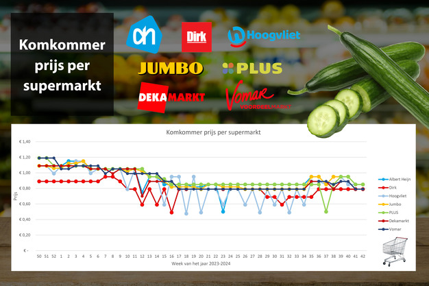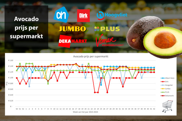 Prijsdata zijn afkomstig van Supermarktscanner.nl en gebaseerd op de online prijzen in de webwinkels van Albert Heijn, Jumbo, Plus, DekaMarkt, Dirk en Hoogvliet. De prijs is een gemiddelde, inclusief de promoties. In deze prijsvergelijking zijn herkomst en kwaliteit niet meegenomen. De meeste supermarkten vermelden deze gegevens niet op hun website, Hoogvliet en Jumbo vermelden het land van herkomst. Mogelijk worden in de bovenstaande prijsvergelijking onrijpe avocado's met rijpe vergeleken en Spaanse komkommers met Hollandse.