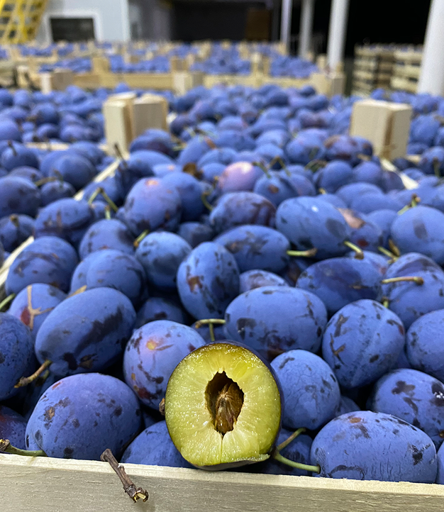 Stefan Bitlan met pruimen die klaar zijn voor de export