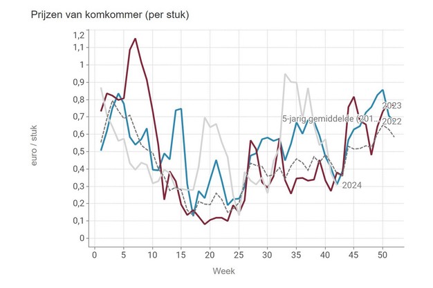 De prijsgrafieken in het groot zien? Dat kan op pagina met landbouwcijfers van het Vlaamse ministerie van Landbouw & Visserij. Bekijk hier alle VBT-middenprijzen voor week 42 voor groenten.