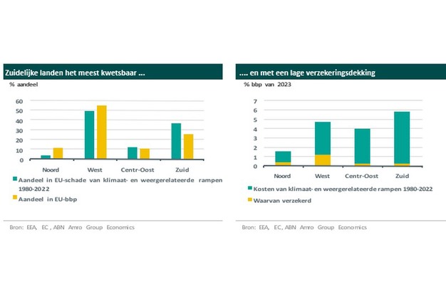 Bovenstaande berekeningen geven aan dat op de middellange (2050) en lange (2100) termijn de regio die de meeste verliezen lijdt geleidelijk zal verschuiven naar de Atlantische landen in het westen van de EU vanwege de verwachte grotere kwetsbaarheid van dit gebied voor overstromingen. Hoewel de Atlantische landen momenteel de hoogste verzekeringsdekking voor klimaat- en weergerelateerde rampen hebben (ongeveer 40-50%), kunnen verschuivingen in de risico's rond deze rampen leiden tot veranderingen in de verzekeringsdekking. Uit een rapport van de EIOPA van de EU blijkt dat de verzekeringsdekking afneemt wanneer de kans op natuurrampen toeneemt. Zo hebben bijvoorbeeld de bosbranden in Californië en Australië volgens de EIOPA geleid tot wijdverspreide meldingen van problemen met de vernieuwing van verzekeringen. Zie ook onze eerdere notitie.