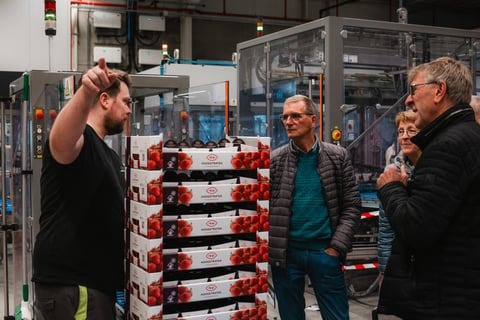 "Bij de punnet opzetafdeling was dit bijvoorbeeld het gebruik van de QR-code. Kent iedereen dit principe? Hoe verloopt de traceerbaarheid? Maar ook: hoe verloopt het automatisch inzetten van de punnets? Zo merkten we dat nog niet iedereen alle machines die we gebruiken, had gezien. Het is leuk dat we dit nu allemaal tentoon konden stellen", legt Leen uit. "Daarnaast werden er op de centrale sortering effectief paprika's gesorteerd, waar bezoekers onder meer uitleg kregen waarom telers kiezen voor centrale sortering en wat de voordelen hiervan zijn. Bovendien waren er over de hele rondleiding informatieborden geplaatst. Hier waren ze zo'n anderhalf uur zoet mee, maar uiteindelijk kon iedereen het op zijn eigen tempo doen."