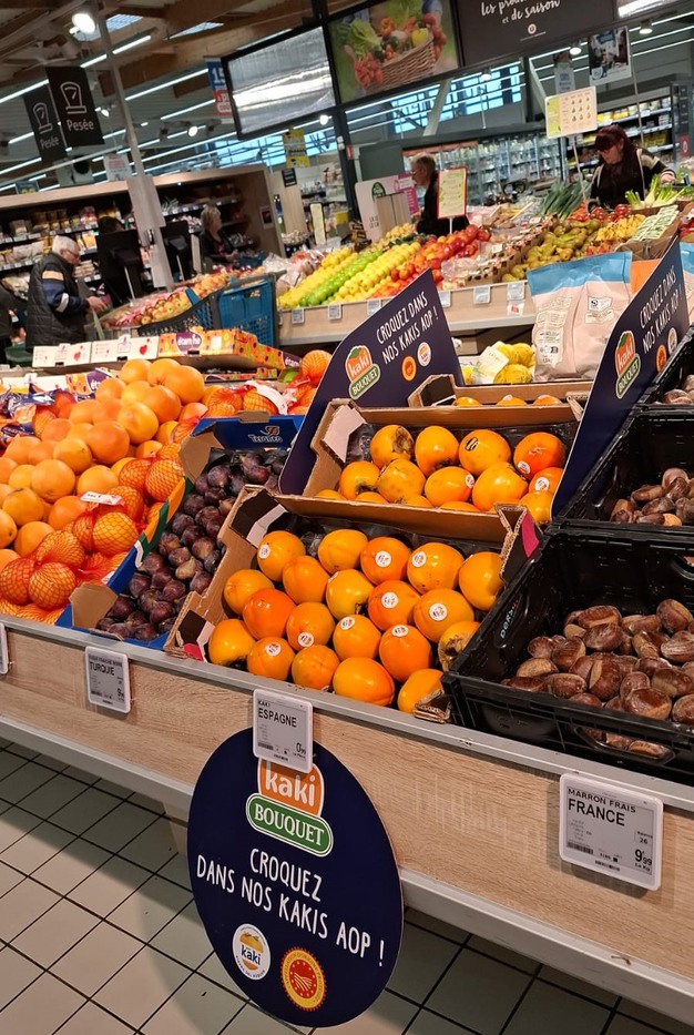 Om het product te democratiseren stelt het bedrijf ook voor om de positie van kaki's in het schap te herzien. "Omdat kaki's uit Azië komen, worden ze over het algemeen bij het exotische fruit geplaatst. De tests die we in samenwerking met een partnerketen hebben uitgevoerd, hebben echter aangetoond dat de positionering in de hardfruitafdeling de verkoop met 30% verhoogt. Dit toont het ongelooflijke potentieel van deze fruitsoort op de Franse markt."