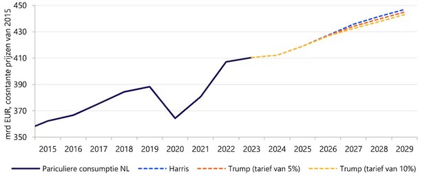 Figuur 6: Particuliere consumptie is lager in Trump-scenario's