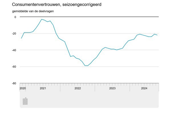 Met -22 lag het consumentenvertrouwen in oktober onder het gemiddelde over de afgelopen twintig jaar (-10). Het vertrouwen bereikte in januari 2000 de hoogste stand ooit (36) en in september en oktober 2022 de laagste stand ooit (-59). Het CBS meet het consumentenvertrouwen elke maand sinds april 1986 op basis van het consumentenconjunctuuronderzoek. Het consumentenvertrouwen is een gemiddelde van 5 deelvragen, waarbij van elke vraag het saldo van positieve en negatieve antwoorden wordt genomen. Als alle consumenten positief zijn, is het saldo 100. Als alle consumenten negatief zijn, is het saldo -100.