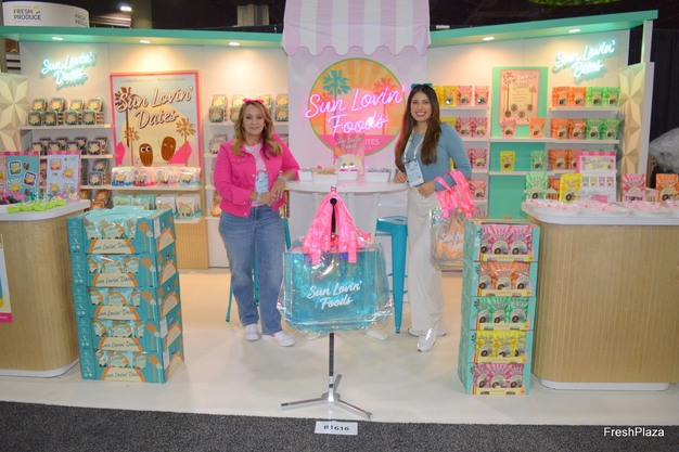 Sun Lovin' Foods had een stand op de recente IFPA Global Produce & Floral beurs in Atlanta. Naast hun dadels lieten ze ook 'dadelbites' zien. Sarah Atrian, directeur verkoop en marketing bij Sun Lovin' Foods, zegt: "Sinds de lancering van Sun Lovin' Foods in oktober 2023 zijn onze Sun Lovin' Bites ongelooflijk goed ontvangen. Het unieke, met zonnebloemboter gevulde hart van onze dadelhapjes, in combinatie met spannende smaken als Chocolate Cherry, Mocha Espresso, Apple Pie en Banana Nut, heeft zowel klanten als bezoekers van beurzen weten te boeien. Onze levendige nieuwe display verhoogt ook de zichtbaarheid in de winkel en de toegankelijkheid, wat cruciaal is geweest voor het stimuleren van proef- en herhalingsverkopen."