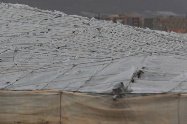 "Naar schatting zijn er 90 hectare kassen bezweken onder de hagel. Voor die tuinders is dat natuurlijk een flinke strop, maar het is maar een klein percentage van de circa 33.000 hectare teelt in Almería. Bovendien betreft dit altijd oude platte kassen. Andere kassen, met een hellende dakstructuur kunnen dit gewicht wel aan. Er zijn nogal wat kassen, waarbij de hagel dwars door het plastic is geslagen, vooral de kassen waarvan het plastic al bijna aan vervanging toe was. Bij kassen met nieuwer plastic zie je soms wel kleinere gaten. Ook veel autoruiten en zonnepanelen zijn gesneuveld door hagelstenen ter grootte van een pingpongbal. Overigens zie ik in de getroffen zone toch ook véél kassen waar helemaal niets aan is te zien", vertelt Jan.